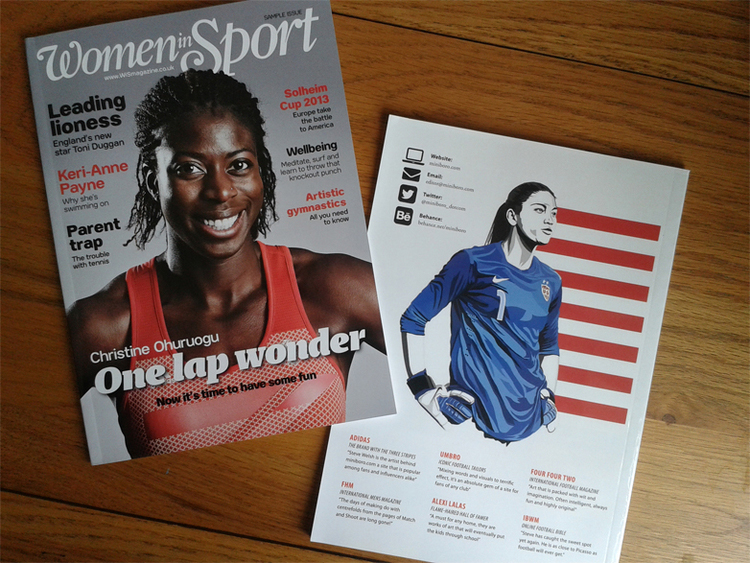 Women in Sport is a national monthly magazine that aims to cover all aspects of women in the sporting arena. My Hope Solo illustration featured on the back cover of their sample issue (August 2013) and was also included in their launch issue which hit the shops on October 24th.