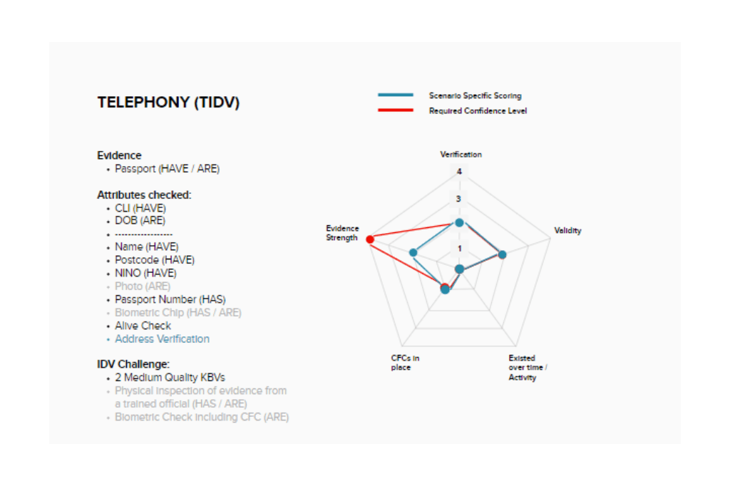 The key point here though, is that a large proportion of these checks can only be carried out in a face to face situation, with a trained official who has access to relevant capabilities, like a bio-metric chip reader. The image below shows what happens when you use the same piece of evidence as part of a telephony challenge.