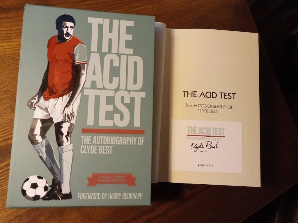 I was particularly pleased to be invited back (by DeCoubertin Publishing) to provide the artwork for a Special Edition of Clyde Best’s autobiography ‘The Acid Test’.