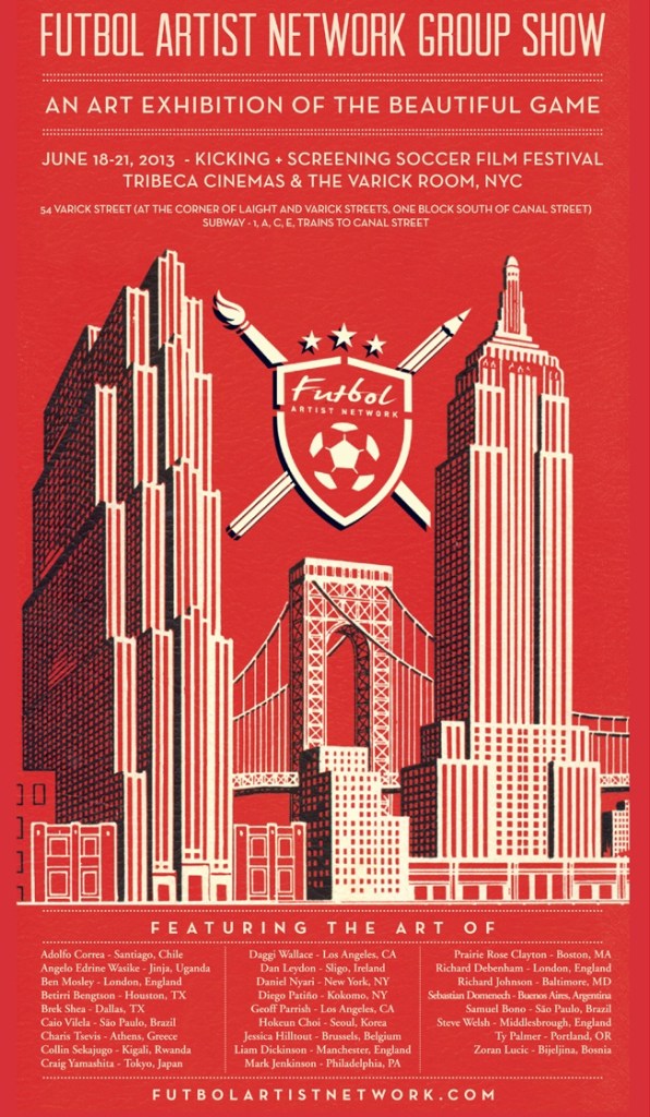 The 5th annual Kicking & Screening Soccer Film Festival (2013), was hosted at the (sadly now closed) Varick Room in downtown NYC. During this four day event, K+S presented a soccer-art show in partnership with the Futbol Artist Network, which looked to showcase artwork from around the world, depicting the many sides of the beautiful game.