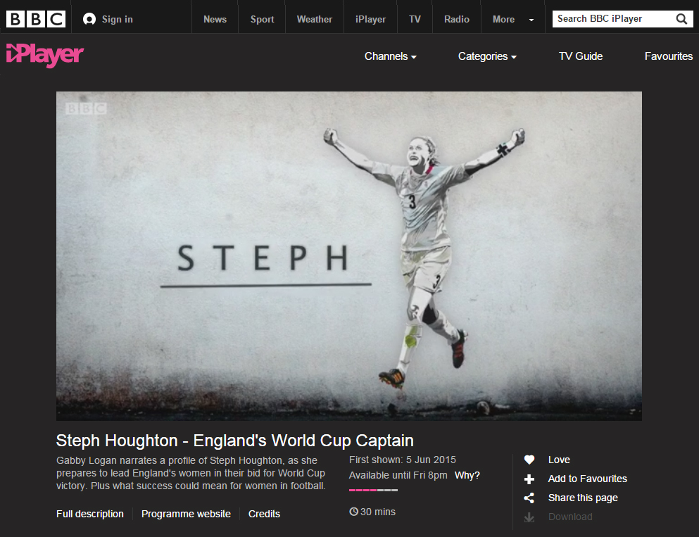 The programme aired on BBC1 and BBC2 in the lead up to England’s opening game against France and was available on iPlayer until June 15th 2015.